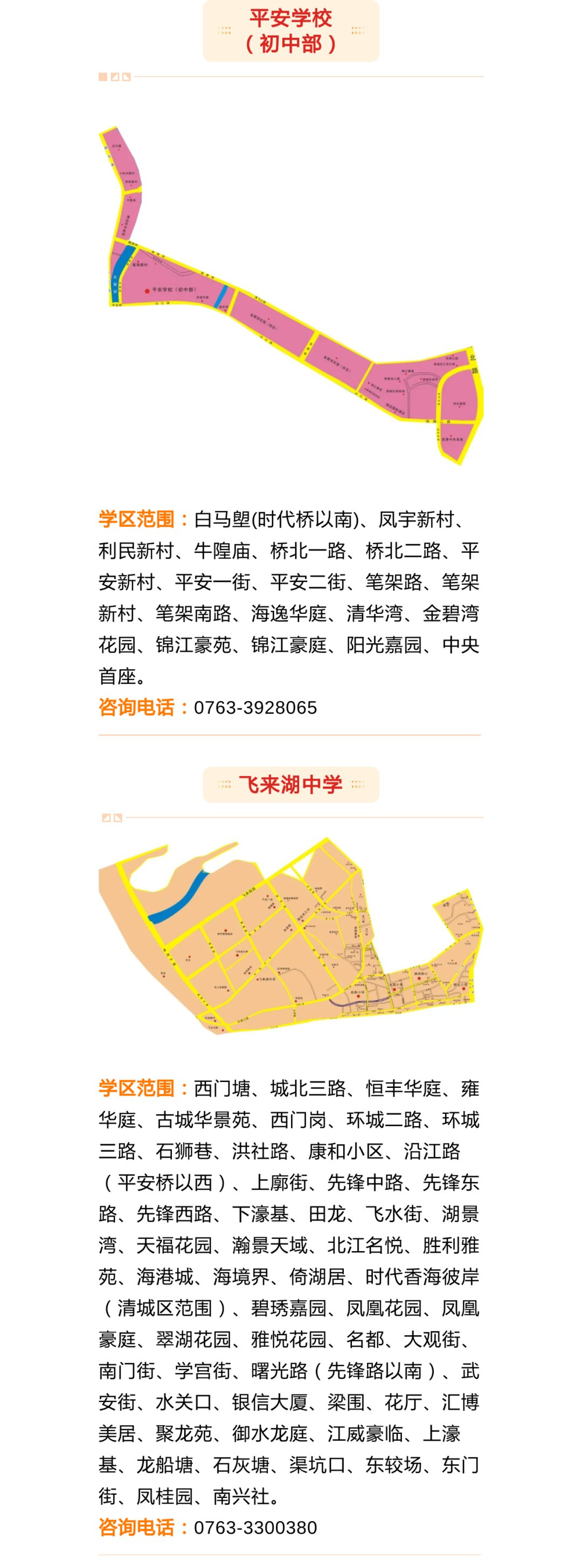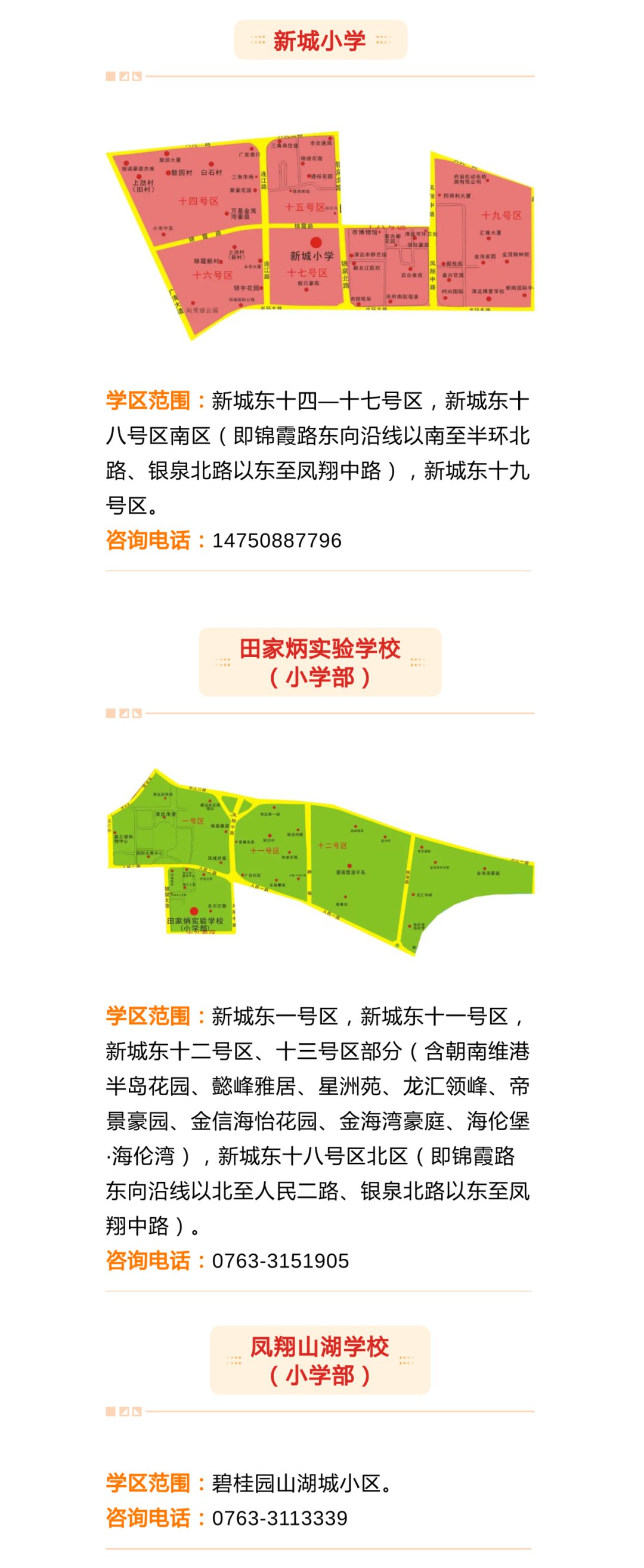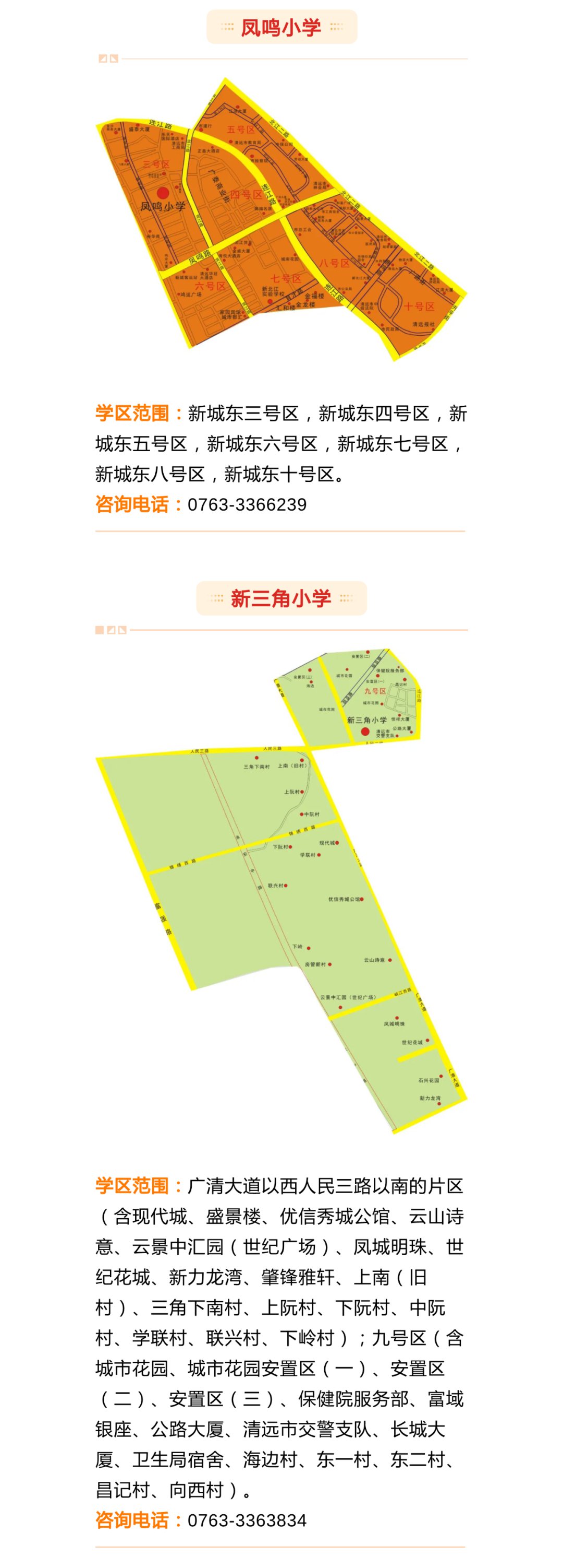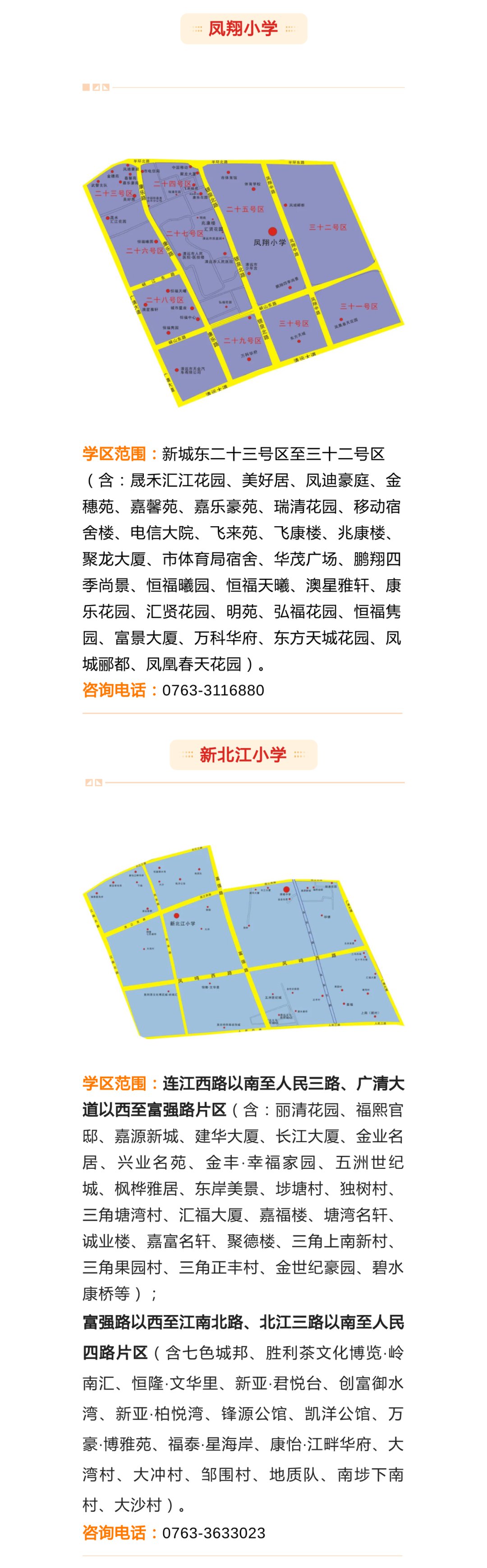 由于今年新增了清飞小学、新城小学,还有个别学校扩建,部分学校学区进行了适当的调整。