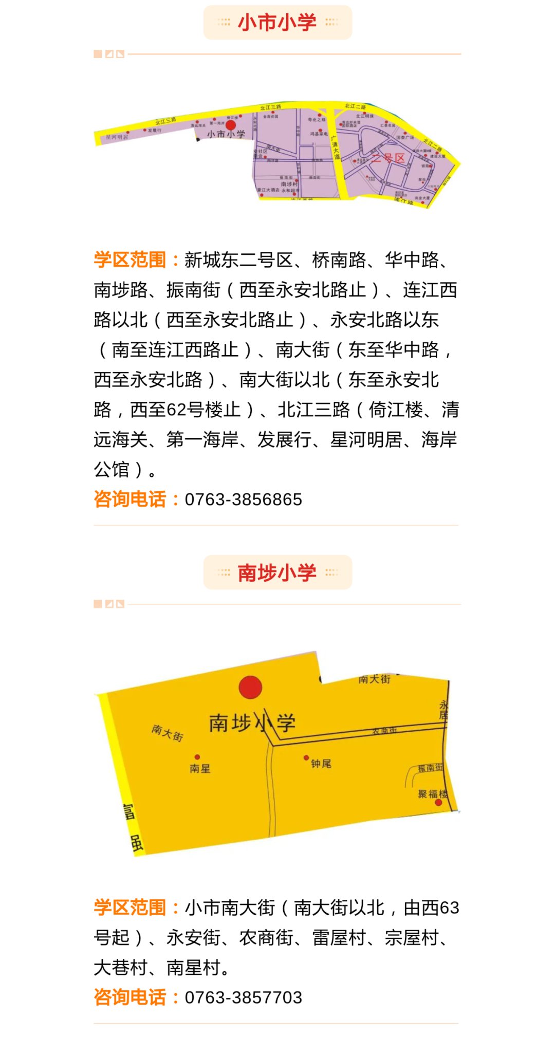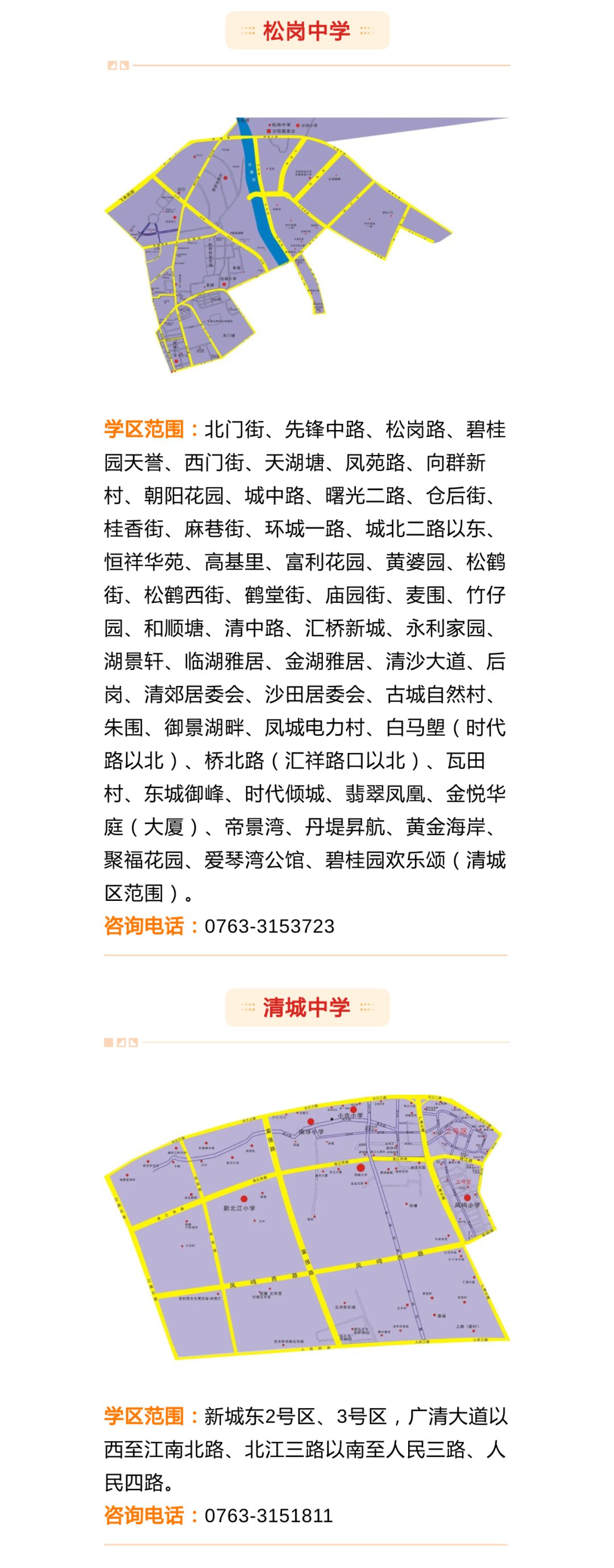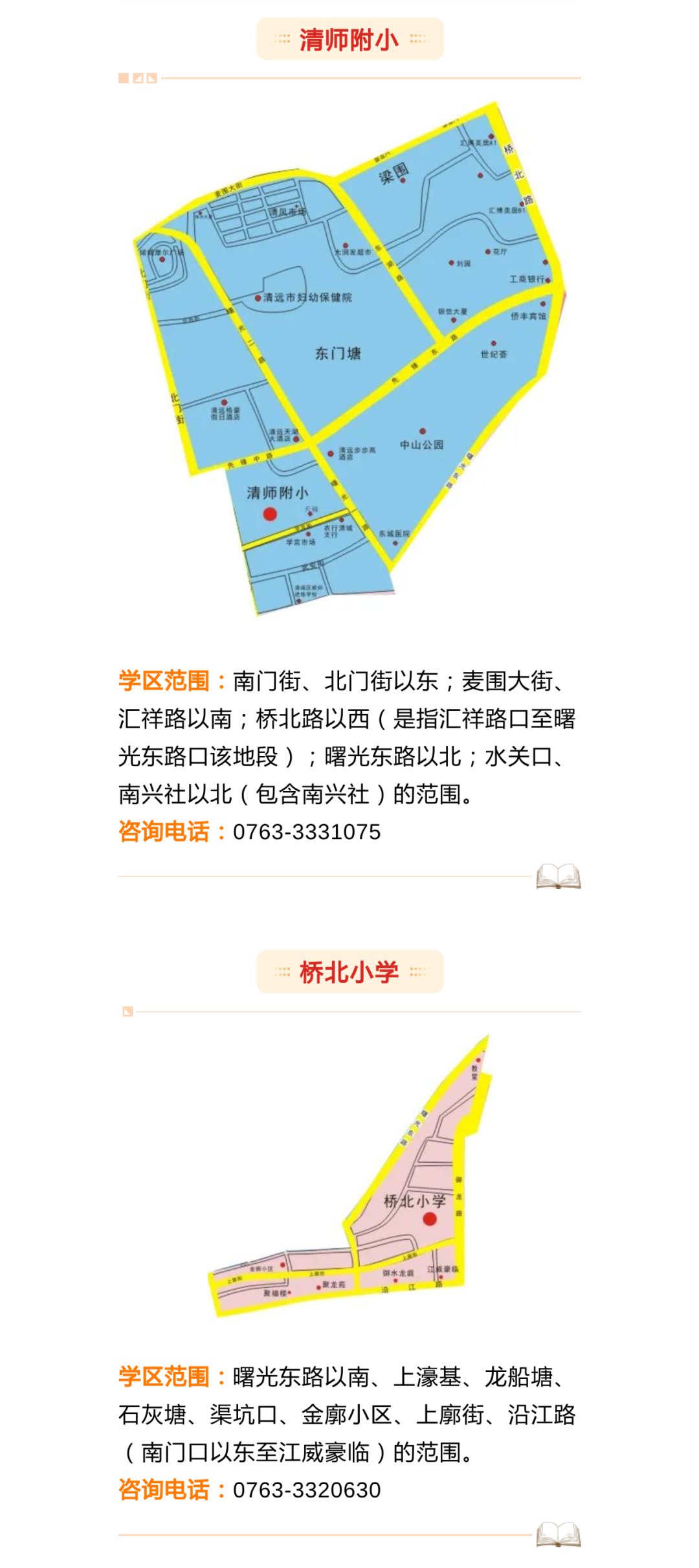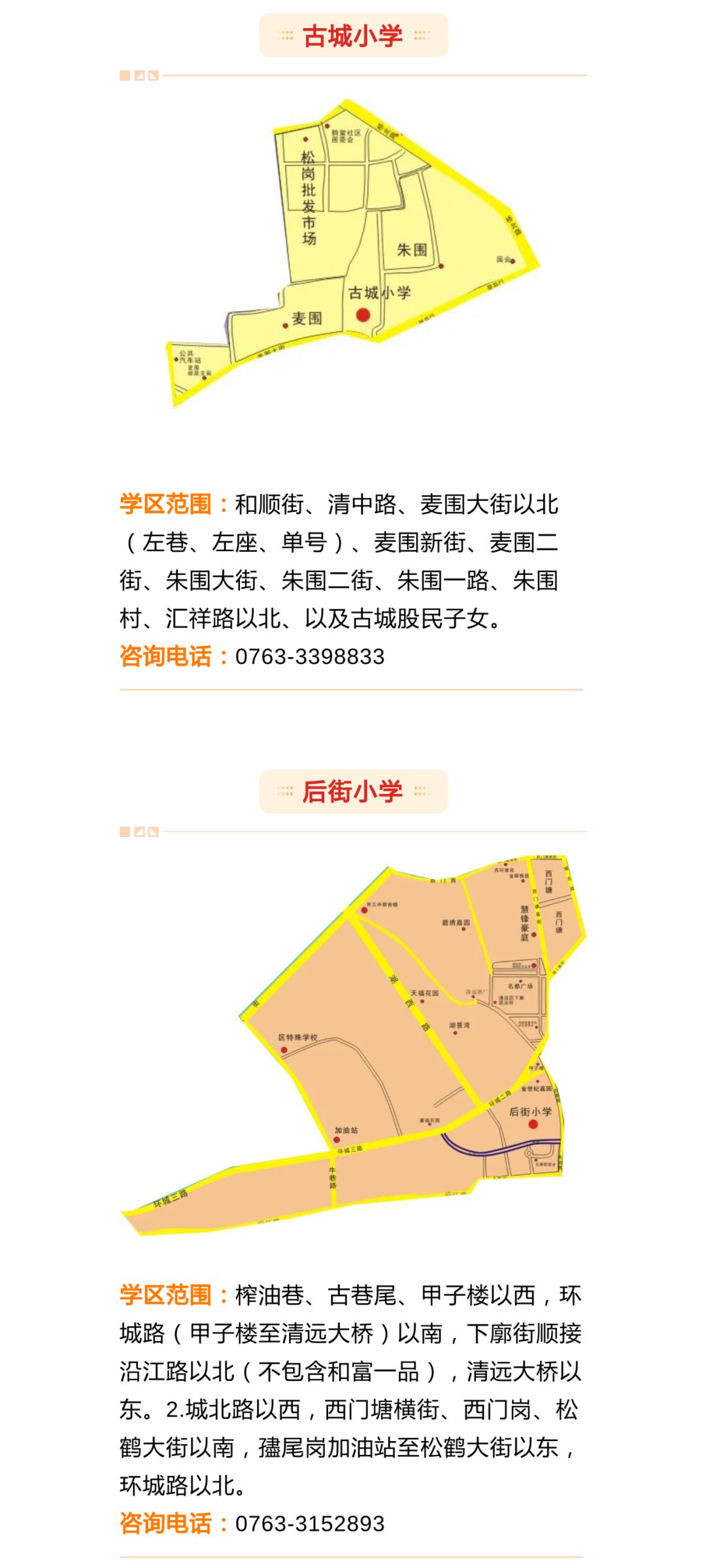 由于今年新增了清飞小学、新城小学,还有个别学校扩建,部分学校学区进行了适当的调整。