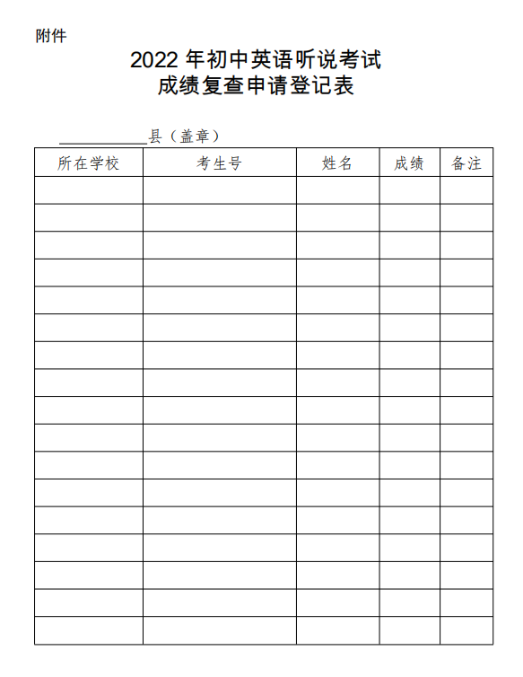 附件:2022年初中英语听说考试成绩复查申请登记表
