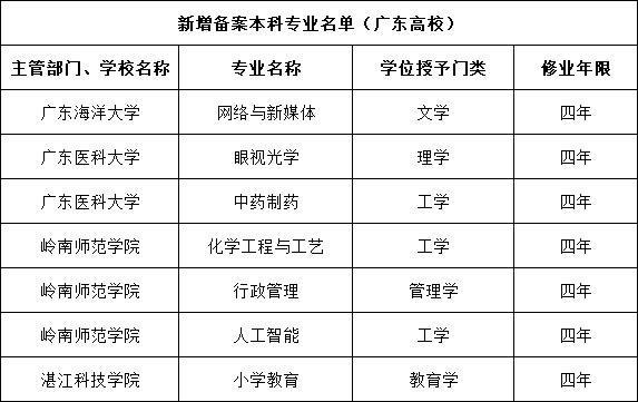 其中湛江高校,广东海洋大学、广东医科大学、岭南师范学院、湛江科技学院新增备案本科专业共有7个。