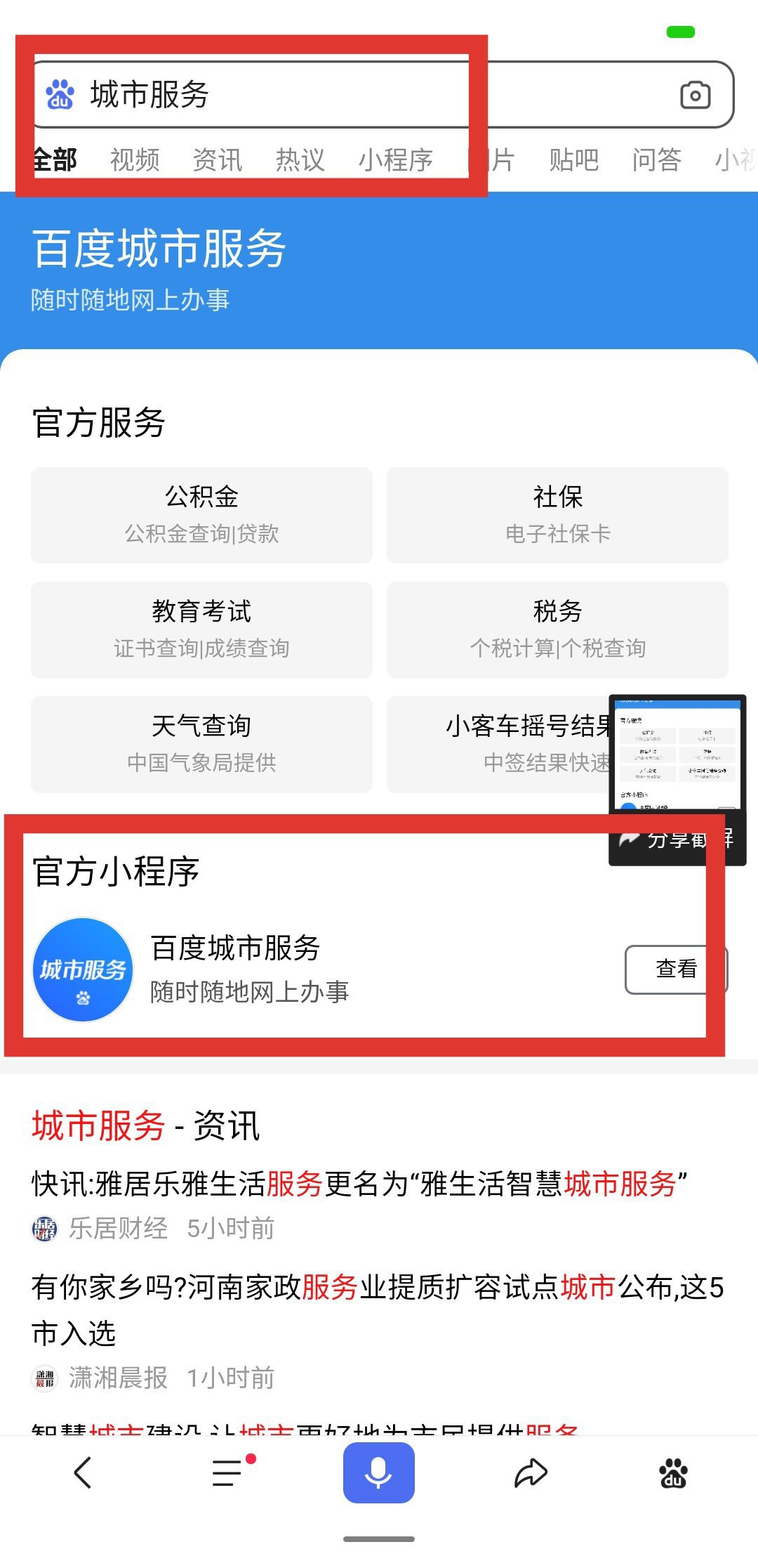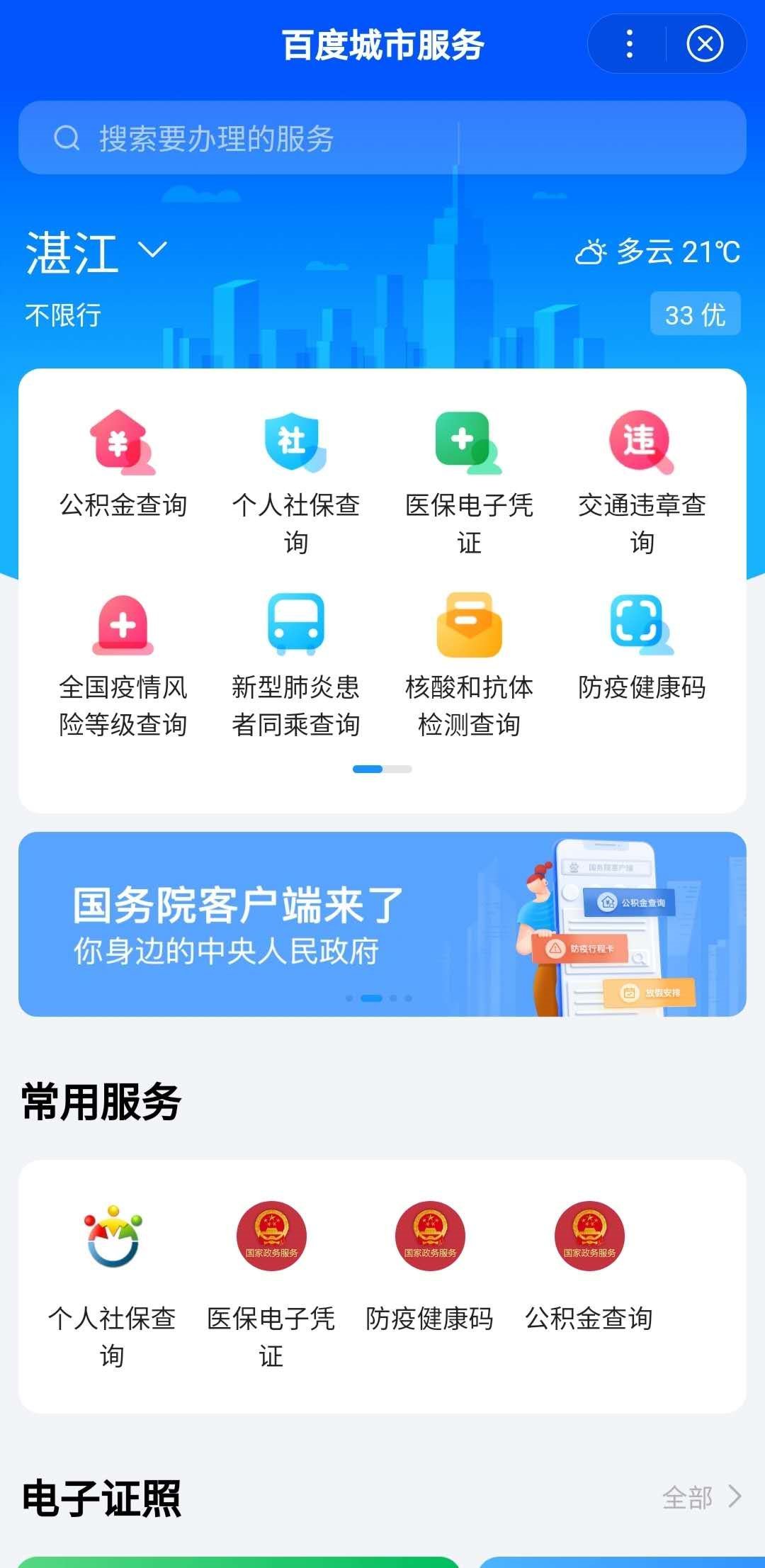 第一步:百度搜索【城市服务】小程序,进入小程序后定位到【湛江】