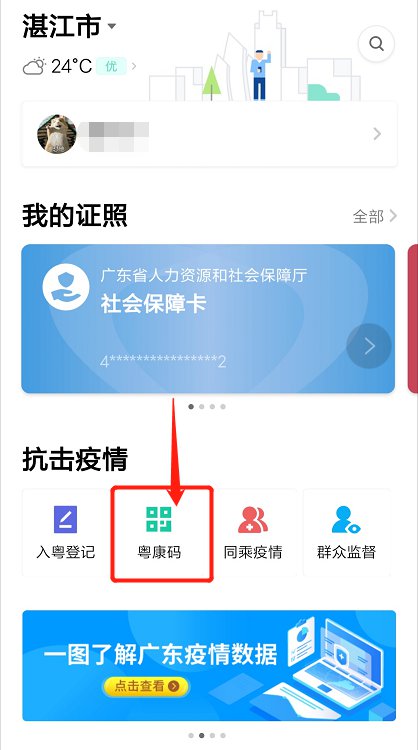 第一步:进入粤省事小程序,点击首页”粤康码“