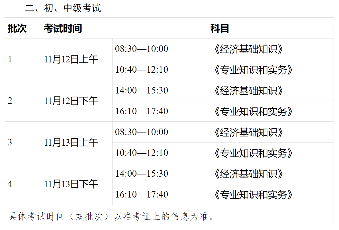 初级、中级经济专业技术资格考试(以下简称“初、中级考试”)于11月12日、13日举行。