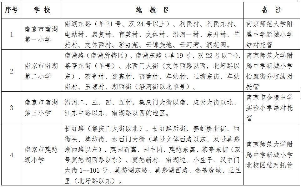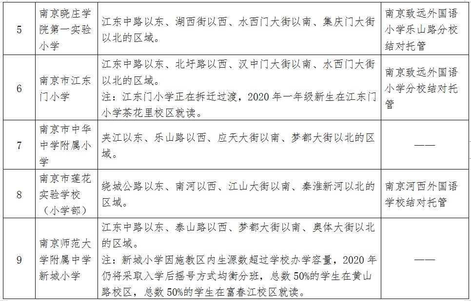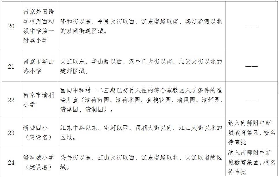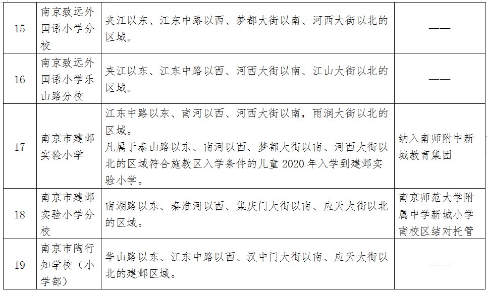 2020年建邺区公办小学施教区:
