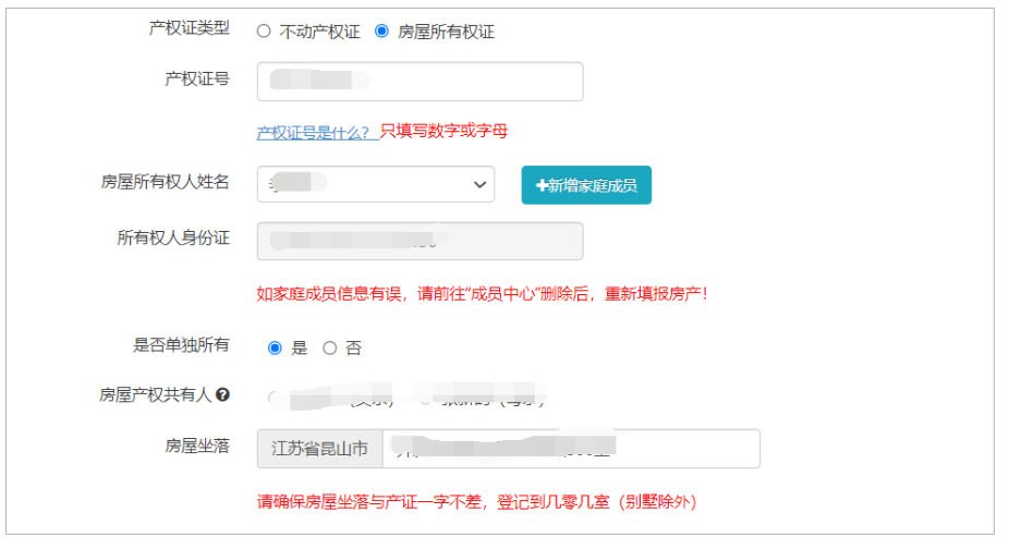 房屋所有权证: 如果你拥有住宅类房产并且已经取得房屋所有权证,房屋产权证类型选择“房屋所有权证”, 并填写产权证号。