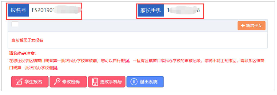 用户可以看到注册手机号以及报名号。