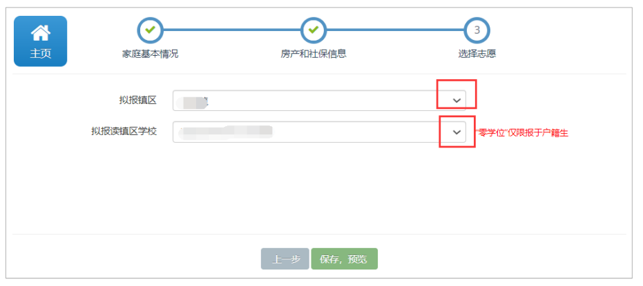 拟入读志愿学校选择好后,点击“保存,预览”按钮,进入下一步。