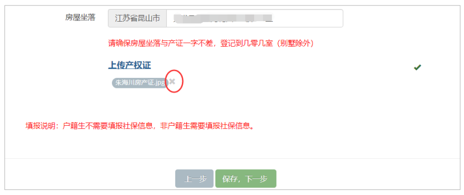 如果产权证上传错了,可以通过文件右侧“×”按钮(如下图所示),进行删除,删除后点 击“上传产权证”按钮,重新上传即可