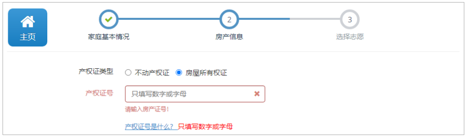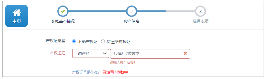 不动产权证: 产权证类型系统默认不动产权证,如果你拥有住宅类房产并且已经取得不动产证,直接填写产 权证号(选择年份和填写不动产权证号)即可。