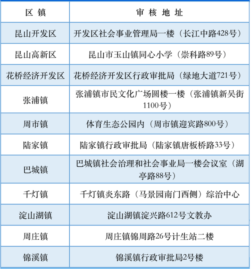 父母或其他法定监护人需到下表↓各区镇进行现场审核。
