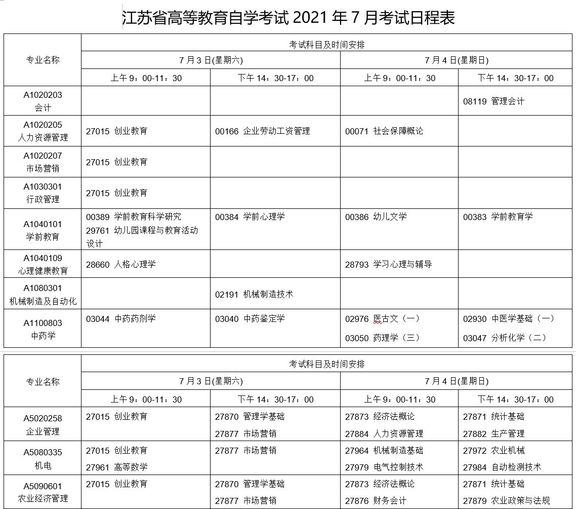 二、2021年江苏省7月自考考试将于7月3-4日进行,报名时间为5月25日-29日。