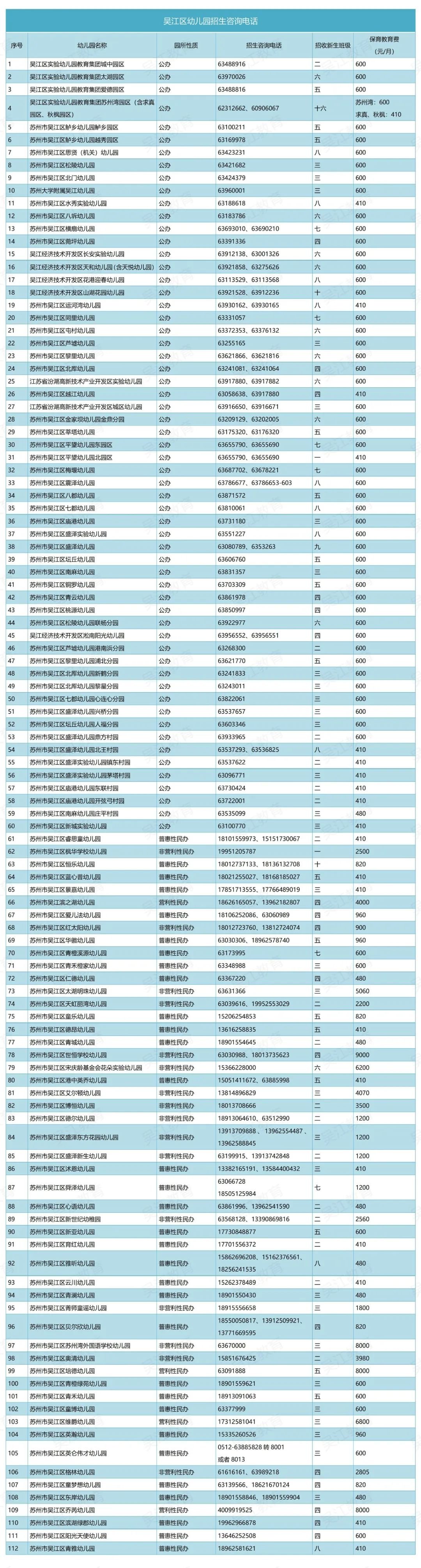 2022年吴江区公办学校幼儿园咨询电话(吴江幼儿园地址)