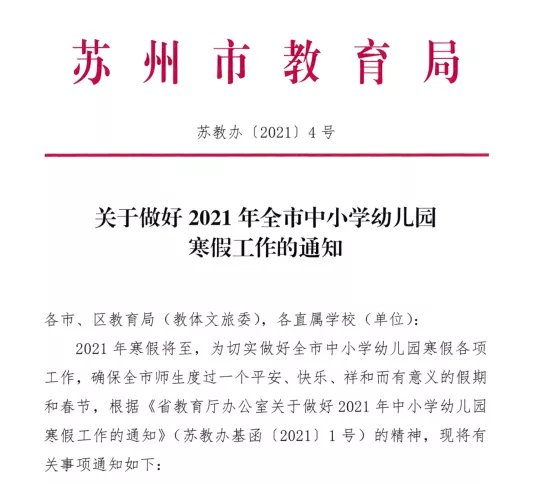 请各地各校严格按照规定时间执行,不得推迟放假、提前开学。