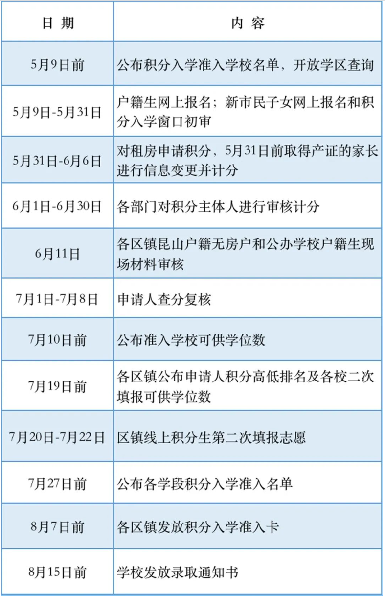 | 6月11日 | 各区镇昆山户籍无房和公办学校户籍生现场材料审核 |