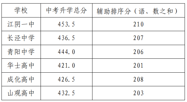 各初中学校分配指标分数线根据本校分配指标数确定,因校而异,但不低于全市分配指标最低控制线453分,并且考查科目合格。同校总分相同考生根据语文、数学成绩之和择优录取。