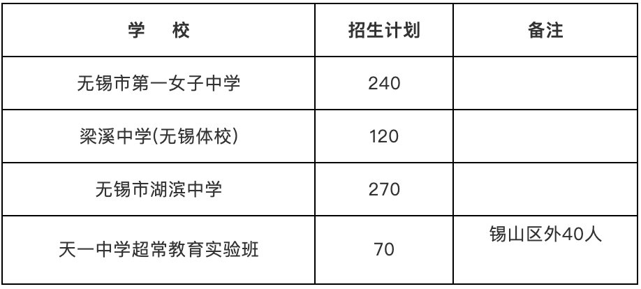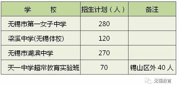 天一中学超常教育实验项目 | 70(其中锡山区外40) | 市区 |