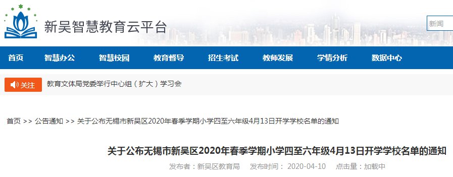 关于公布锡山区2020年春季学期小学四至六年级4月13日开学学校名单的通知