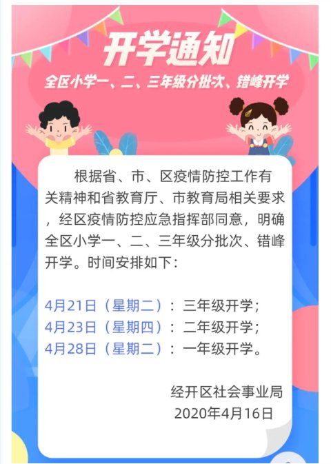 2020常州钟楼小学一二三年级学生要开学了吗?具体时间?