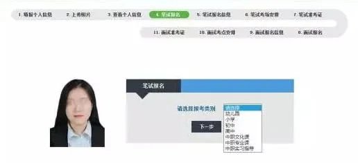 选择考试学段,可选的学段有幼儿园、小学、初中、高中、中职文化课、中职专业课、中职实习指导。