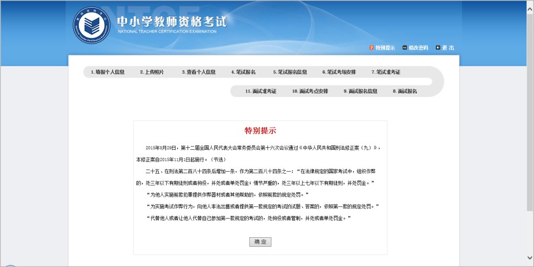 温馨提示:大家一定要自己认真检查自己的信息,因为教育考试机构仅审核考生应填报的项目是否齐全、姓名是否规范、照片是否符合要求等,不负责对考生报名条件进行审核,如果信息错误还被审核通过了,无论是面试还是以后的认定都是很麻烦的,并且后果需要自己承担哦。