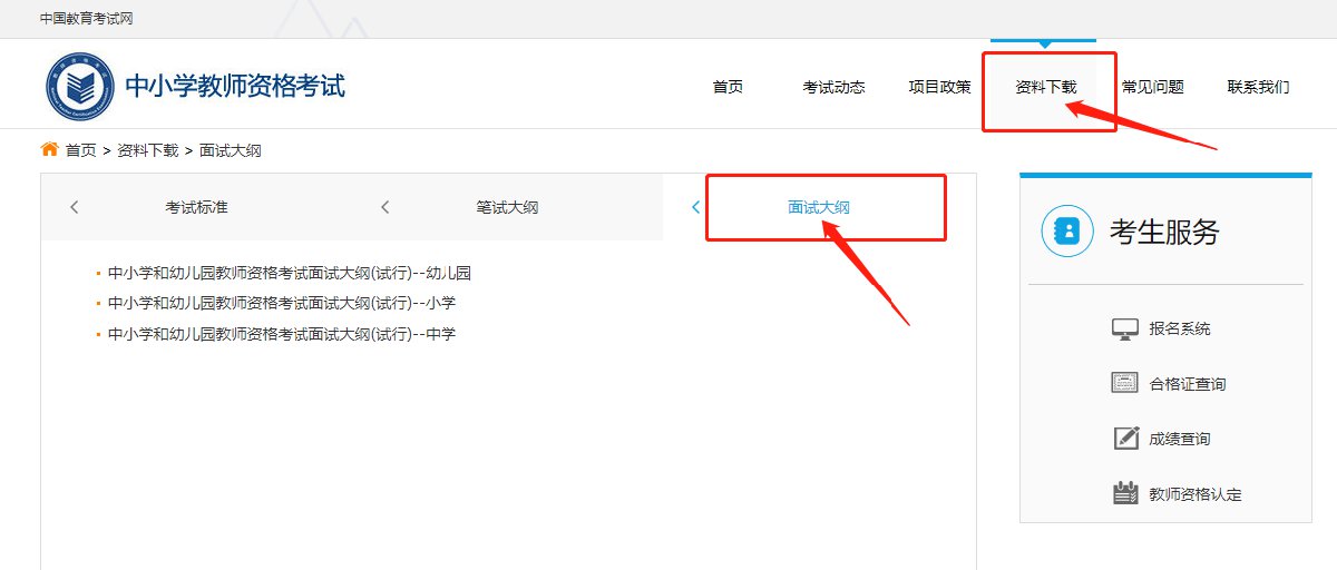 进入后,点击“考生服务”,选择“资料下载”专栏,点击“面试大纲”即可获取相关信息。有需要的考试即可自行下载查看。