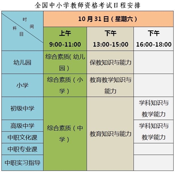 2020年下半年教资考试时间安排:
