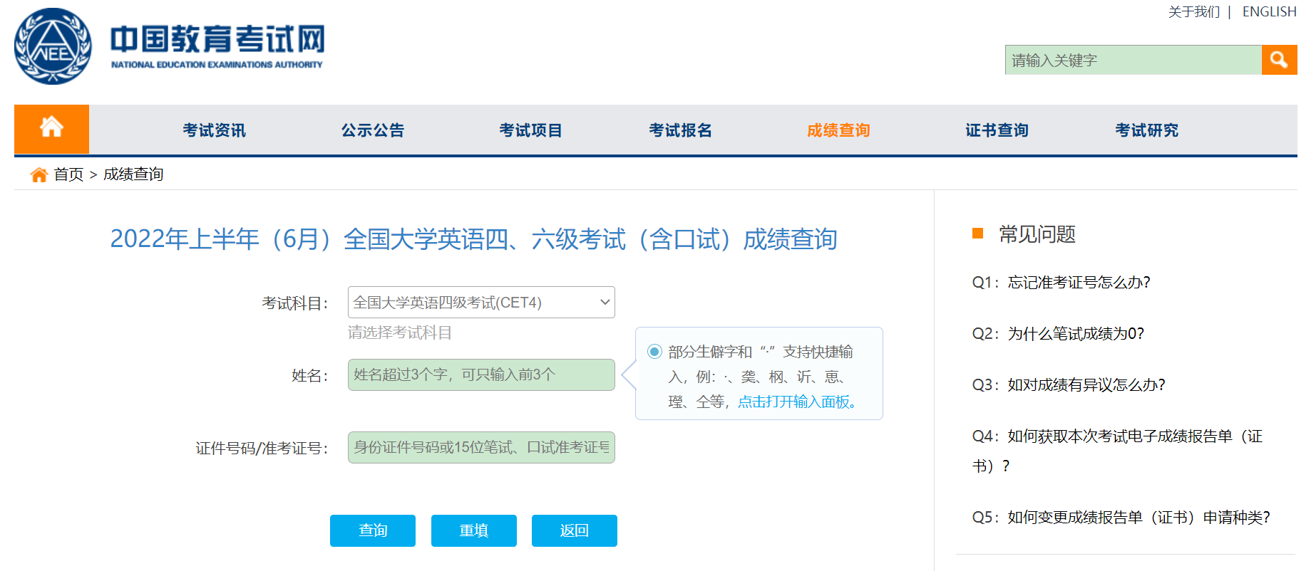 中国教育考试网http://cet.neea.edu.cn/cet