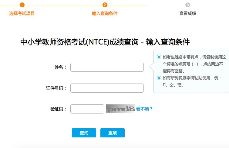 第二步:进入成绩查询入口,输入姓名、证件号码、验证码等信息,然后就可以查询到教师资格证考试成绩