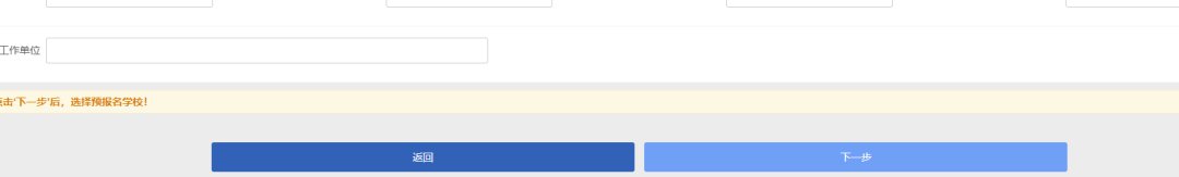 确认信息填报无误后,点击底部“下一步”按钮,提交报名信息,进入预报名学校页面。