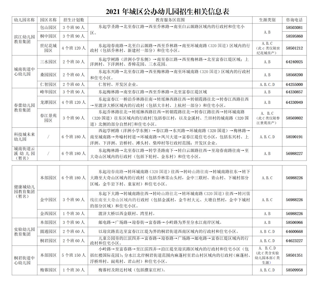 各幼儿园报名对象的类别详见上图。