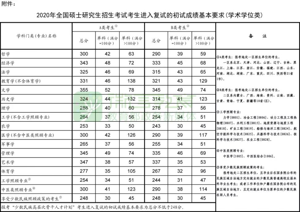 2022年全国硕士研究生招生考试考生进入复试的初试成绩基本要求(学术学位类):