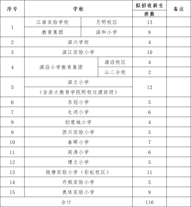 附件:2020年滨江区中小学招生计划