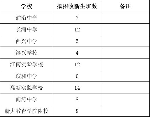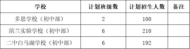 2020年滨江区公办初中招生计划