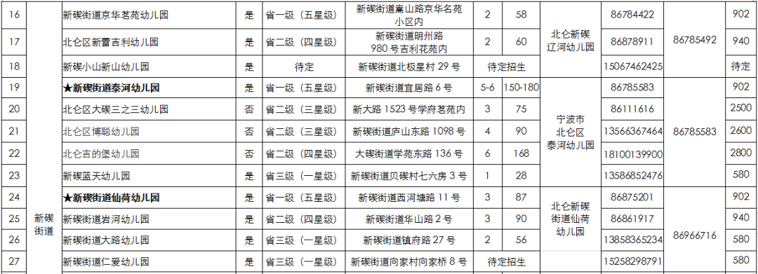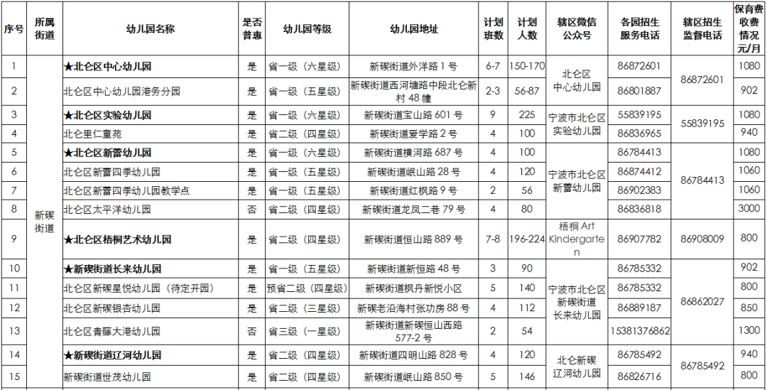 2.新碶街道星悦幼儿园和春晓街道星辰实验幼儿园目前正在筹建装修中,招生开园时间待装修交付、检测合格后再确定。