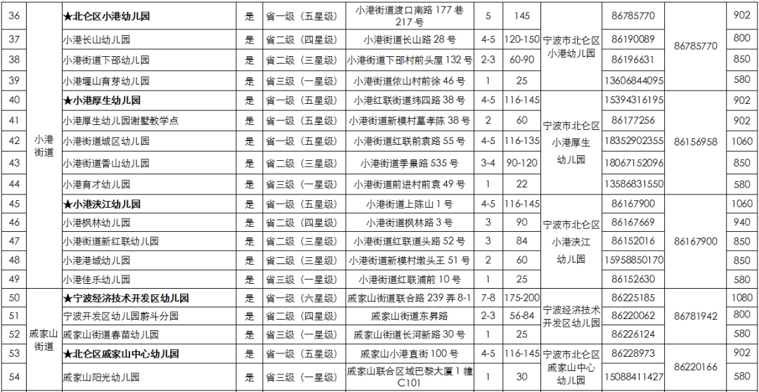1.打★号为辖区中心幼儿园,以上名单均为有招生资质的幼儿园。若不在上述名单的则为无资质幼儿园。