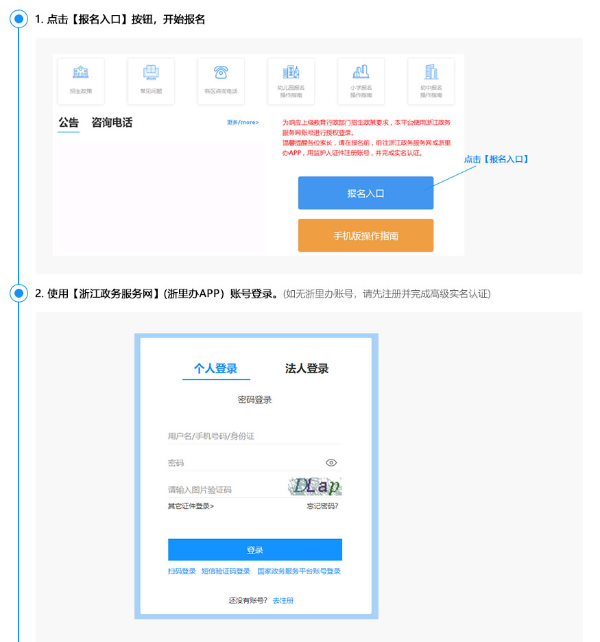浙江政务服务网“宁波市幼儿园入园、义务教育入学报名招生系统”