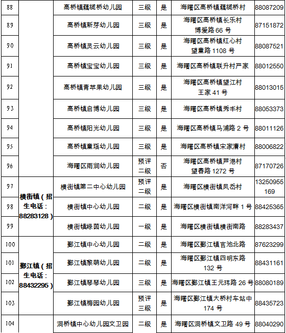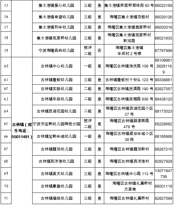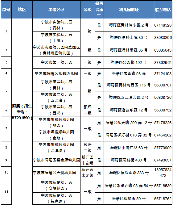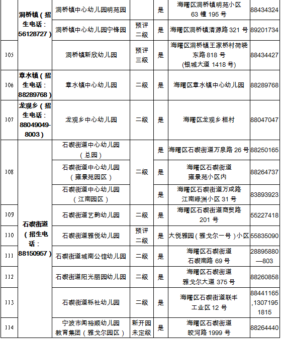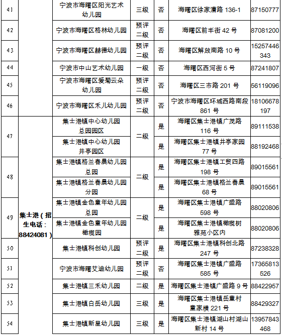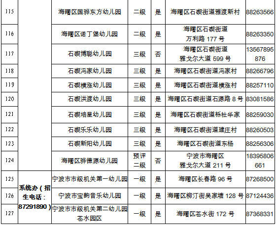 2022学年海曙区具有招生资质幼儿园名单一览表
