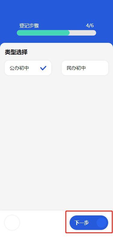 第七步:选择报名类型(对象)。先选择“公办初中”或“公办小学”,再选择“施教区”。