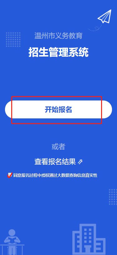 第三步:在“温州市义务教育招生管理系统”中勾选“同意报名过程中授权通过大数据查询信息真实性”,点击“开始报名”。