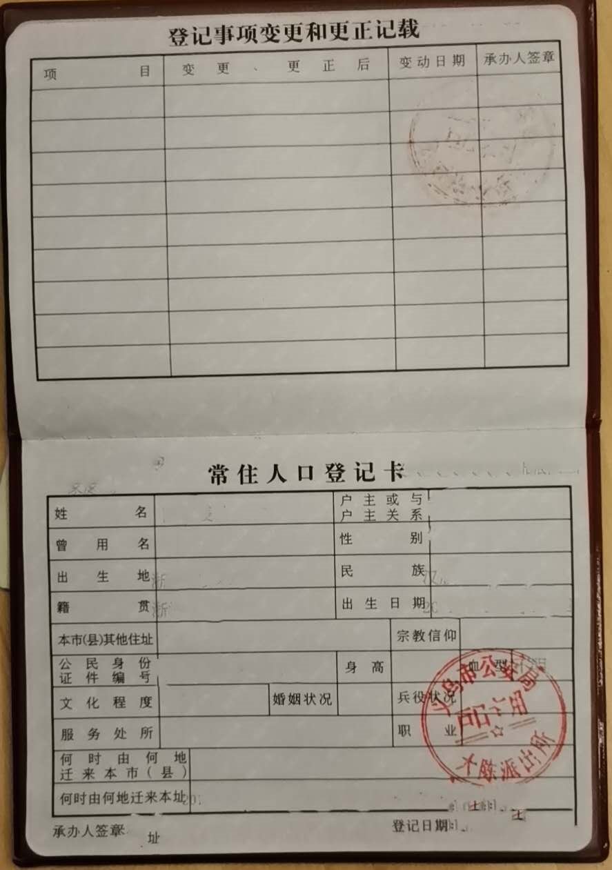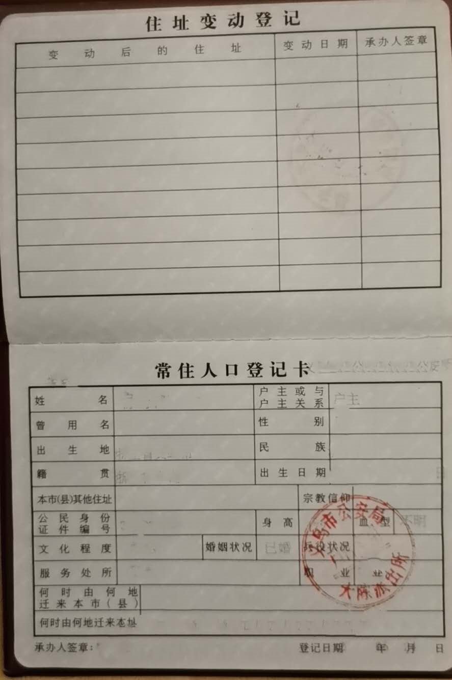 户口本范图:户主页