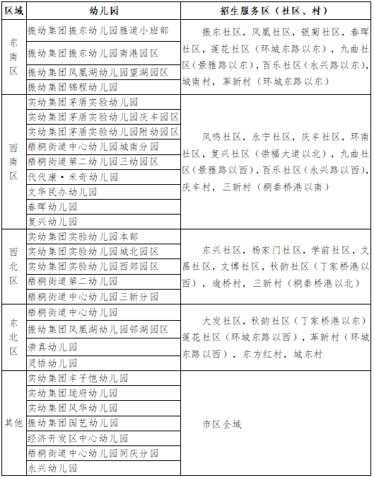 2022学年桐乡市市区普惠性幼儿园“招生服务区”范围