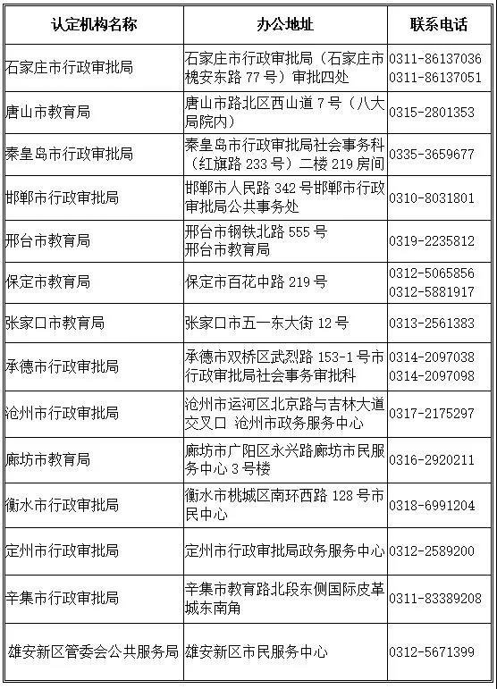 河北教师资格认定机构及联系方式