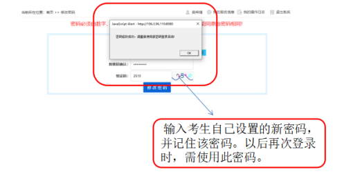 考生输入身份证号、姓名、初始密码(身份证号后六位)及验证码,点击登录,修改密码。