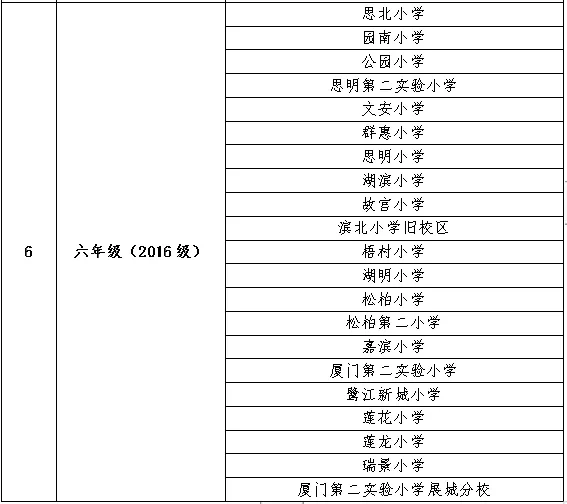 思明区2022年春季转学学位已爆满公办小学相应年级一览表:
