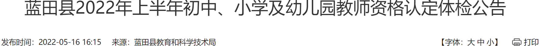 为进一步明确体检工作要求,为申请人提供更好的认定服务,现将蓝田县2022年上半年初中、小学及幼儿园教师资格认定体检有关工作公告如下: