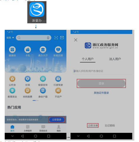 (1)注册、登录“浙里办”APP