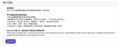登录浙江政务服务网(www.zjzwfw.gov.cn)[可通过浙江省教育考试院官网(www.zjzs.net)“最多跑一次-自考考生免考课程确认网上申报登记”或浙江省教育考试院自学考试信息网(zk.zjzs.net)“我的申请-转考申请”链接]