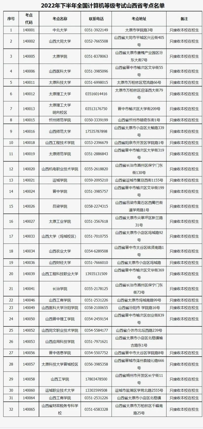 只接受本校在校生报名的考点,社会考生及非本校考生不能在该考点报名,详见附件2备注栏。