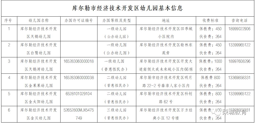 注:库尔勒市经济技术开发区幼儿园隶属库尔勒市经济技术开发区社会发展局审批并监管,咨询电话为0996-2219174。