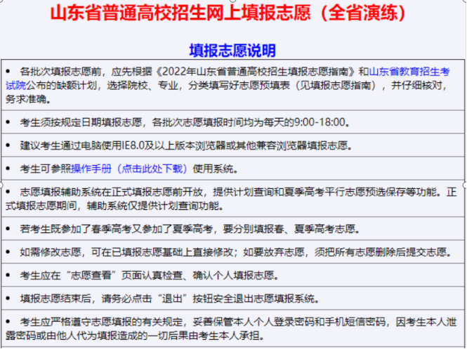 2022年山东高考志愿填报系统考生使用手册